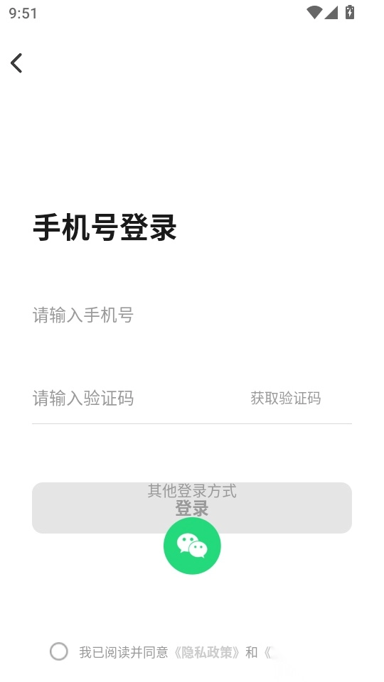 2. 在软件登录界面填写手机号并输入验证码,即可进入程序