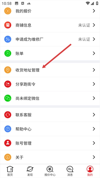 在个人中心页面,点击【收货地址管理】选项。