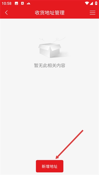 在收货地址管理页面,点击底部【新增地址】按钮。