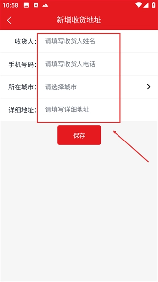 在填写好【收货人】、【手机号码】等相关信息后,点击【保存】按钮,即可完成收货地址的添加操作。