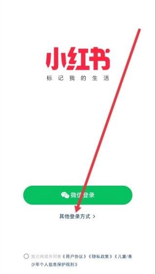 打开REDnote小红书,点击【其他登录方式】