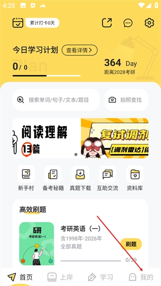 【9】首页新添了新手村、考研秘籍、互助交流、资料库等实用功能板块