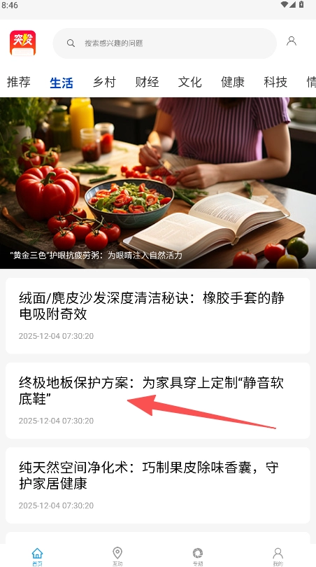 你可以在首页顶部的分类栏里找到“生活”频道,点击进入就能看到相关的资讯内容了。