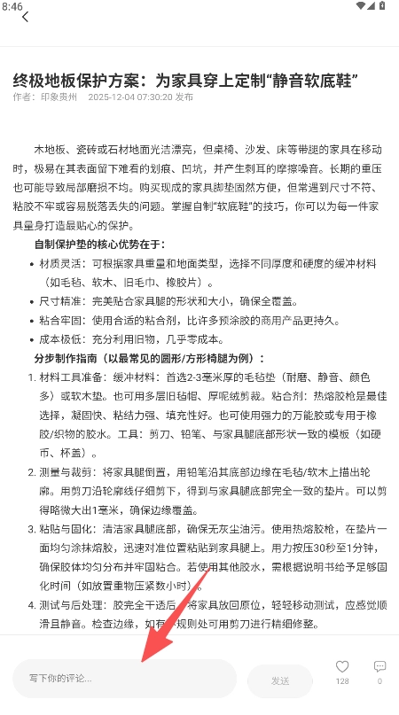 在列表里找到“终极地板保护方案”的图文内容,点击它进入详情页面。