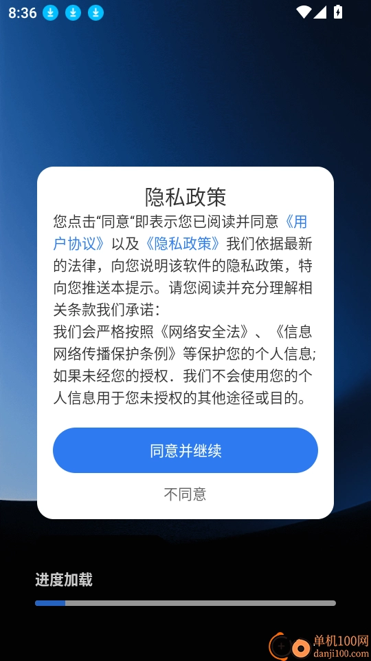 1、首先打开应用点击“同意并继续”按钮进入中。