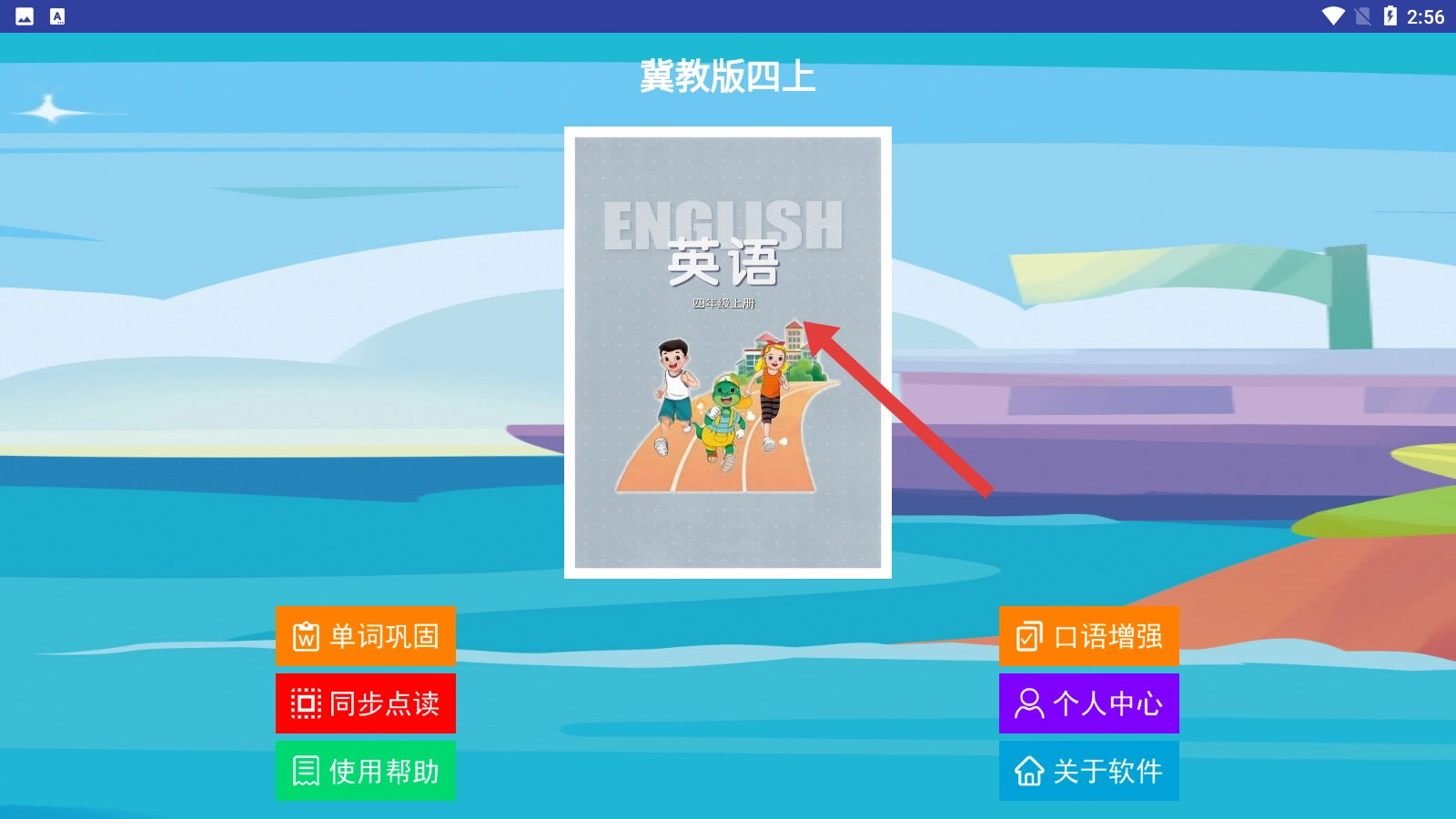 打开软件后,能看到【冀教版四上】英语课本的封面,点击封面即可开始学习。