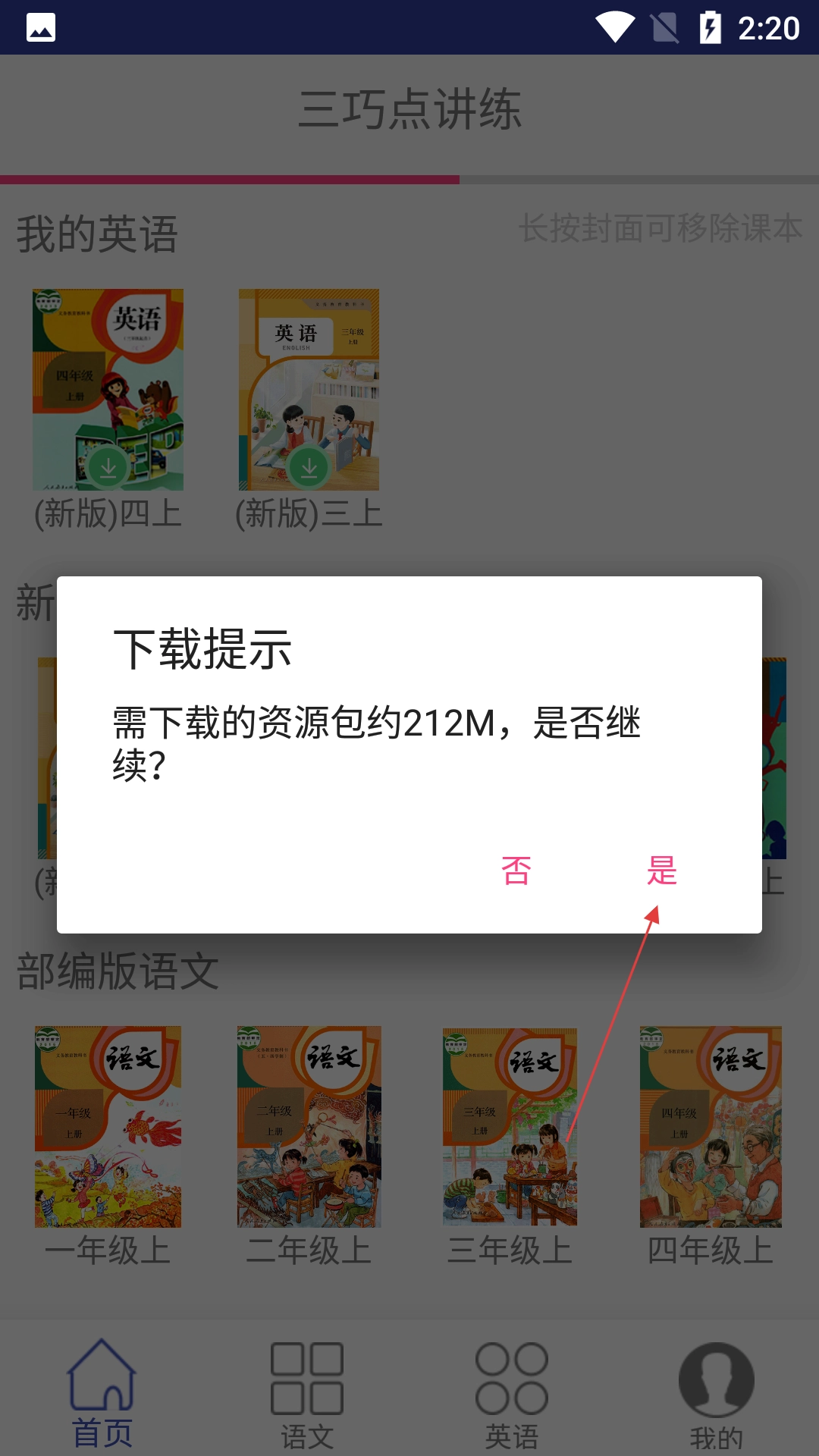 弹出提示页面,点击【是】按钮开始课本资源。