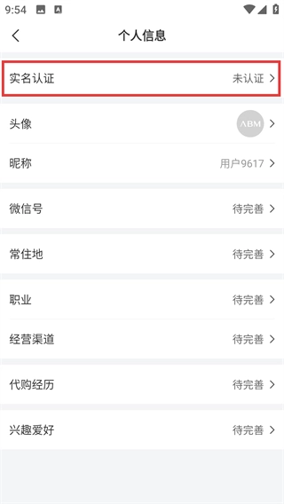 在个人信息页面里,找到【实名认证】这个选项,它目前的状态显示为【未认证】,点击该选项就能进入认证页面。
