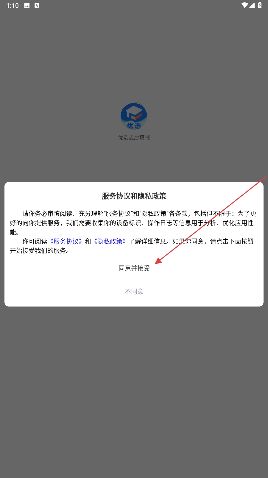 进入应用后,点击【同意并接受】。