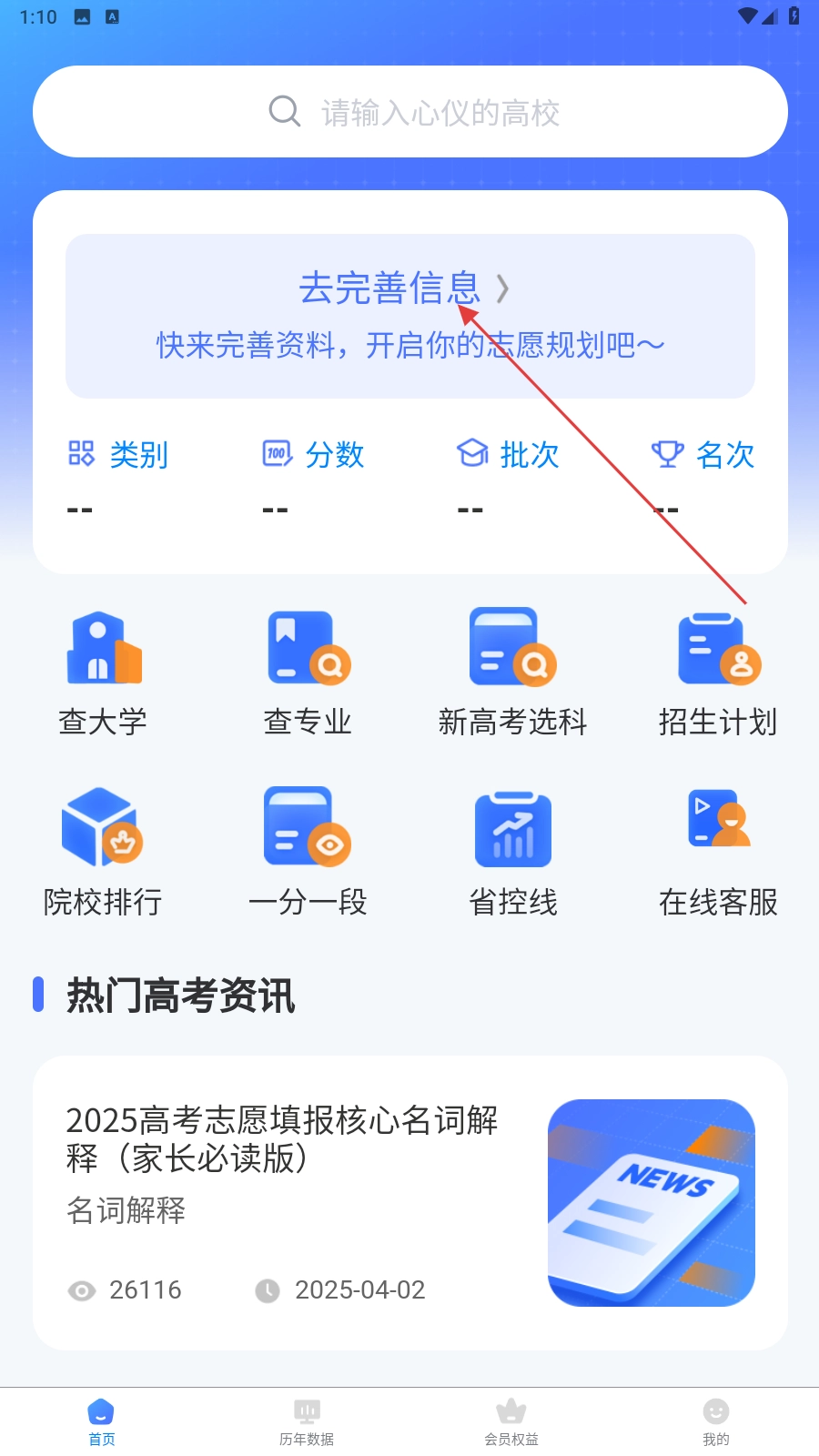 在首页点击【去完善信息】。