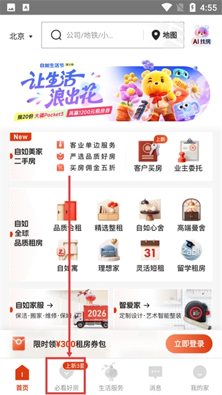 进入界面后,点击底部的【必看好房】选项,就能进入对应的房源页面。