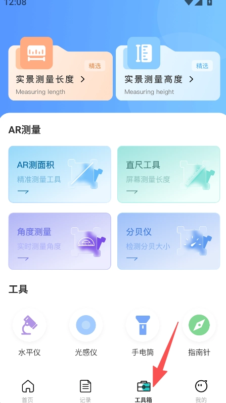 工具箱内配备了AR测量直尺工具等功能,可辅助用户完成相关操作。