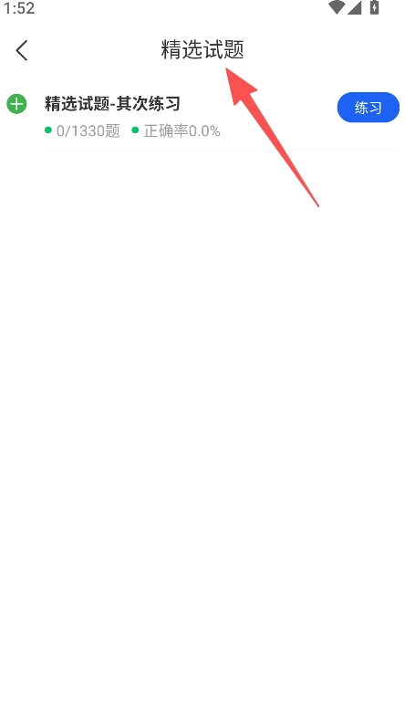 进入精选试题板块后,可查看题量与正确率,点击“练习”按钮即可开始做题。