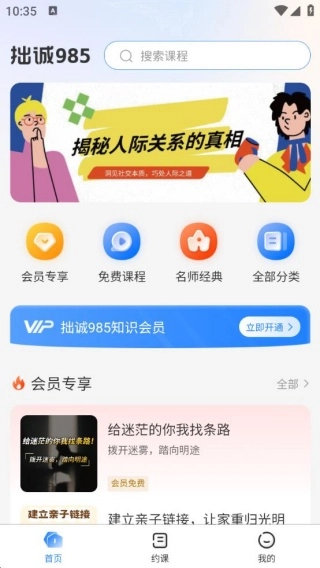 拙诚985作为一款学习类软件,汇聚了海量课程资源,覆盖亲子家庭、个人成长、职场进阶、两性情感等诸多领域。平台不仅有精品名师打造的优质课程,其中部分课程支持免费学习,还设有会员专享内容板块。此外,软件支持音视频切换等多样化学习形式,能让用户根据自身实际情况灵活选择适合自己的学习方式。