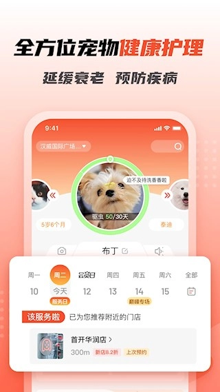 1、日常护理安排:当宠物需要洗澡、美容或洁牙服务时,可借助预约功能快速匹配对应服务,从而节省现场排队等待的时间。