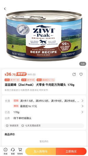 2、用品应急采购:当宠物主粮、零食或日用品出现短缺情况时,可通过商城下单,借助高效的配送服务来及时补充所需物资。
