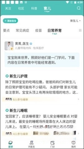 2、进入主页面后,这里是新生儿专区,会提供专业医生的相关建议。