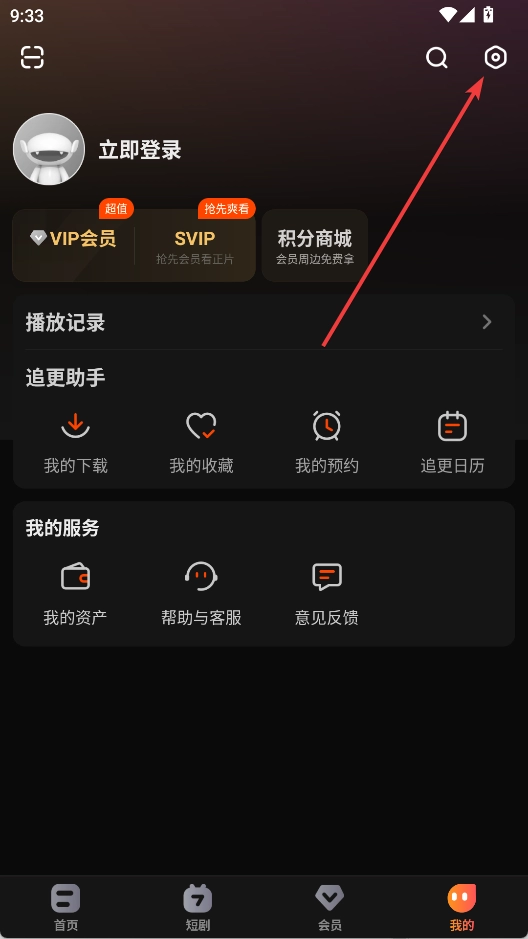 进入“我的”界面,点击右上角螺母按钮