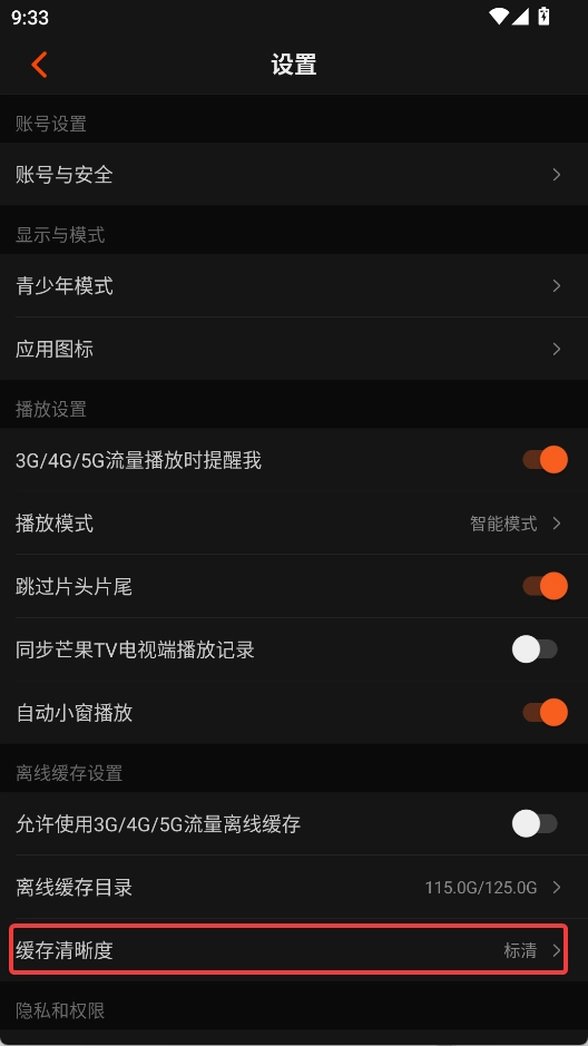 找到“缓存清晰度”选项点击进入