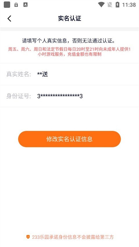 点击修改后,当前实名认证信息将被清除,且实名认证信息每天仅有十次清除机会。