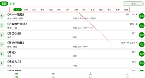 安装完成后进入主界面,即可浏览书籍、药材、方剂等各个模块,并能借助分类索引功能快速找到目标内容。