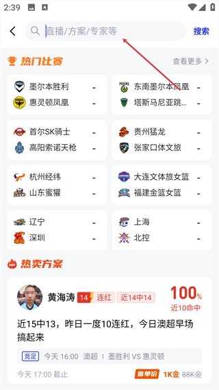 进入首页,点击顶部的搜索栏。