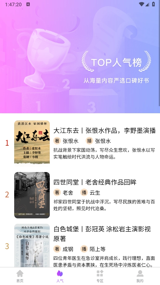 声音客栈3.2.3是一款专注于有声故事的应用,平台上汇聚了海量故事作品,涵盖各类题材的书籍,所有内容均可免费收听。此外,用户还能自由选择不同人声进行专业朗读,随时随地享受沉浸式聆听体验,快来探索吧。