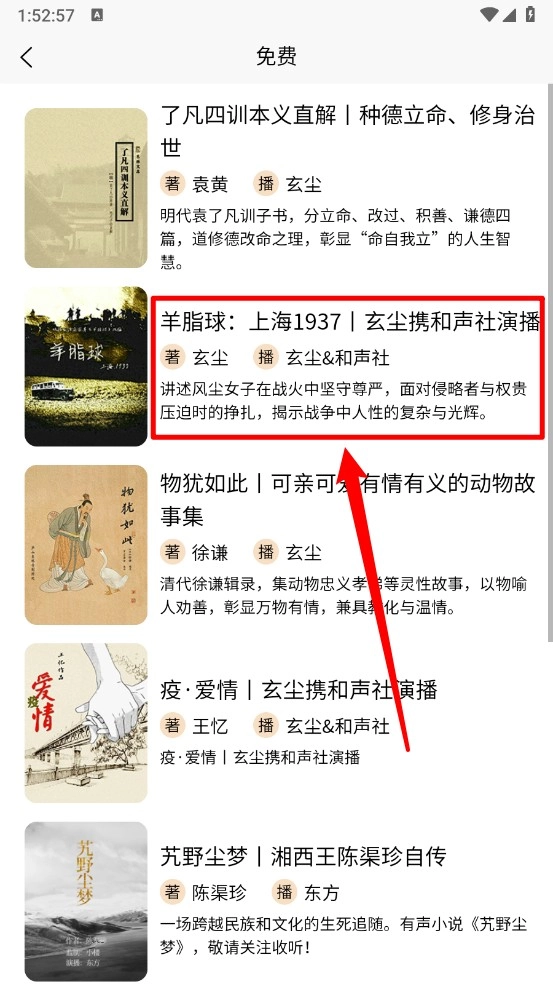 3、如图所示,滑动选择所需听书作品并点击进入。