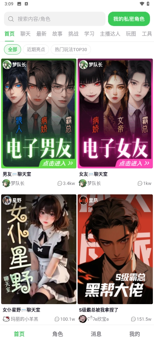 1、在本站软件中打开后,不仅能看到热门的AI角色,还有丰富多样的分类板块。