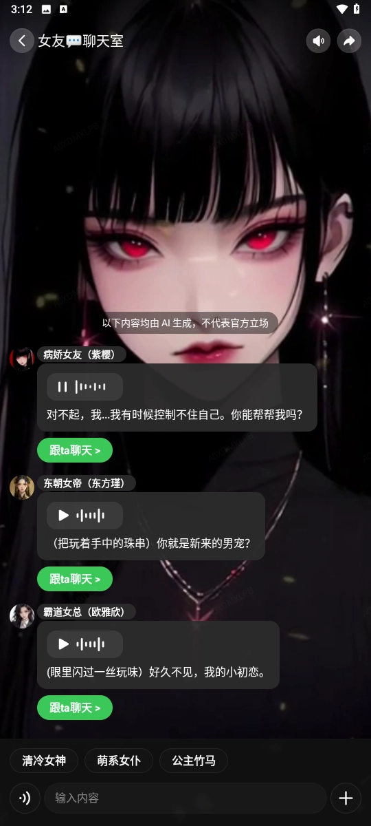 3、这款软件支持随时开启聊天功能,用户可随时与角色进行对话交流。