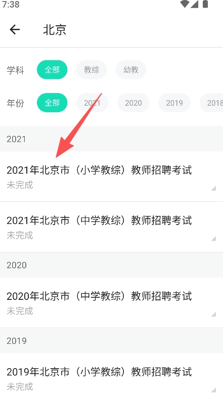 先选择对应的地区、学科和年份,再点击目标真题,即可进入做题页面。
