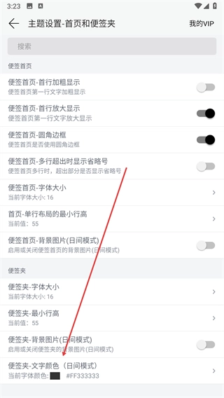 在主题设置页面里找到便签夹文字颜色的选项,点击该选项就能进入颜色选择界面。