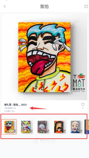 点击作品缩略图,即可查看高清大图,以及创作者、技法等详细信息。