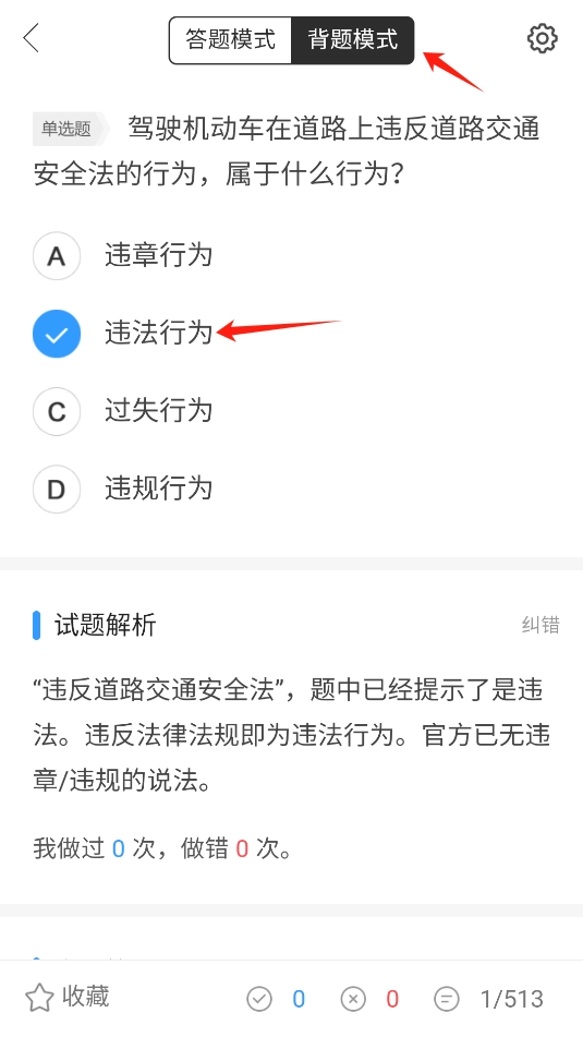 开启背题模式,完成513道题目的背题练习,并牢记相应答案。