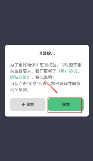 点击同意按钮即可进入应用界面,这意味着您确认接受相关条款,从而能够顺利开启学习与交流的体验。