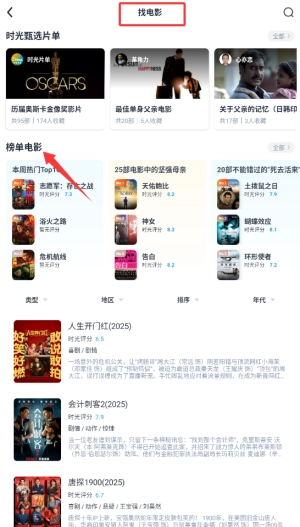 进入时光网首页后,点击顶部导航栏的“找电影”选项,即可进入电影列表页面。