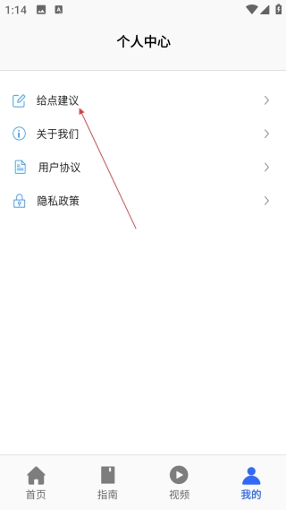 在个人中心里,找到并点击【给点建议】选项,即可进入问题反馈的功能页面。