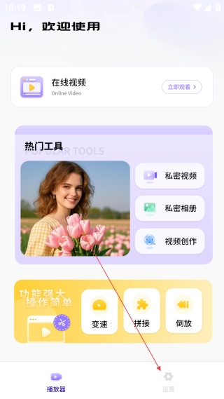 在播放器首页,点击底部的【设置】选项,即可进入应用的功能配置管理页面。