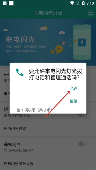 在权限请求弹窗里点击【允许】,给予来电闪光灯光拨打电话以及管理通话的权限。