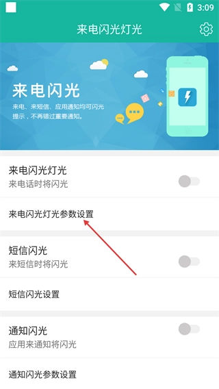 在【来电闪光灯光】界面点击【来电闪光灯光参数设置】选项,即可进入对应的参数设置页面。