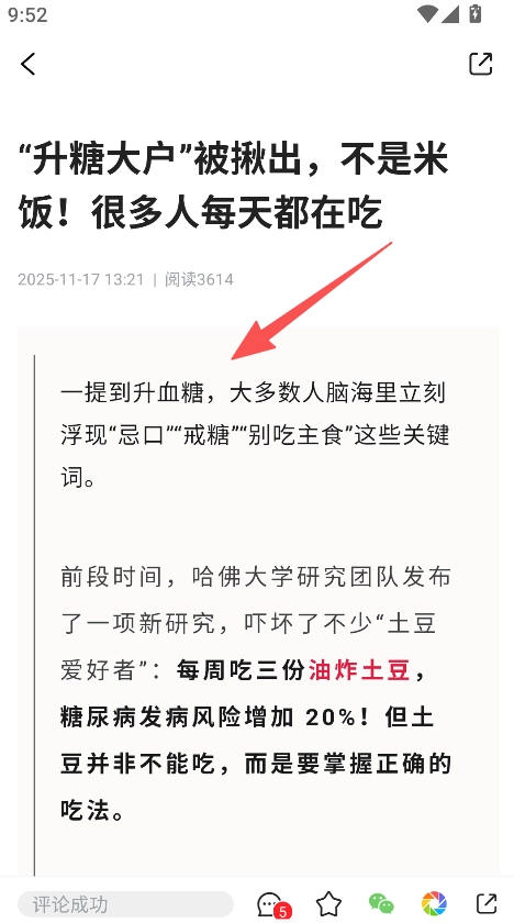 内容呈现直观易懂,健康资讯采用图文结合的形式进行讲解,像升糖食物分析这类内容,通过图文搭配能让读者轻松理解,并且核心亮点也十分突出。