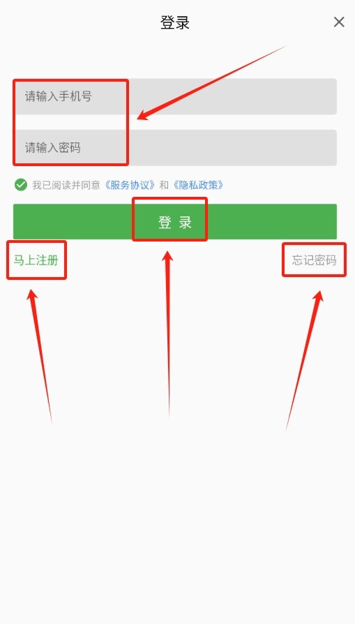 打开软件后进入登录页面,输入已注册的手机号与密码,随后点击登录按钮,就能进入主界面。