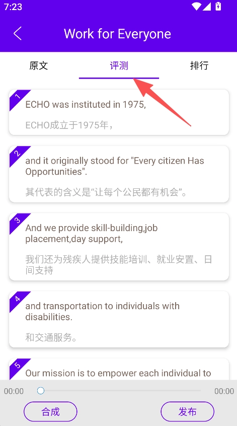 口语评测功能很实用,能针对视频内容开展发音练习,帮助用户提升口语准确性,学习效果也十分直观。