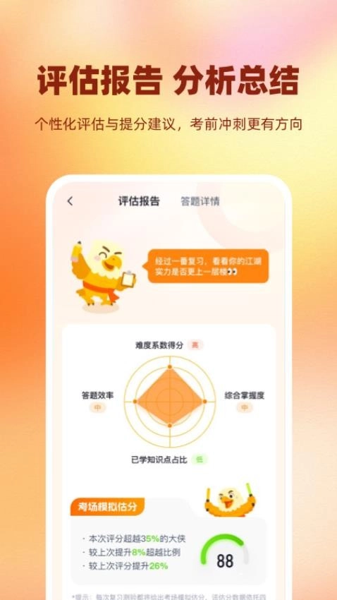 智能算法能够实时处理用户的答题数据,主动定位其知识短板,并制定出个性化的强化训练计划,从而使备考过程更具精准性与高效性。