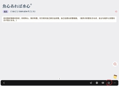 翻译完成后,我们先点击查看详细的翻译信息,接着点击右下角的空心五角星按钮,就能把这个词语添加到收藏夹里,方便随时查看和背诵。