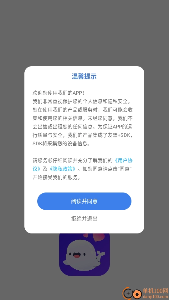 1. 启动软件后阅读“温馨提示”,点击“阅读并同意”按钮进入下一步