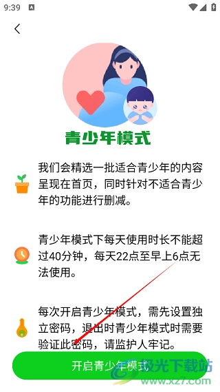 接着在弹出的窗口里,对该模式进行了详细说明,随后点击下方的“开启青少年模式”按钮。
