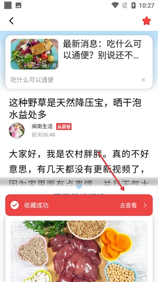 进入【我的收藏】页面,就能看到刚收藏的文章,还能确认它的【收藏】状态。