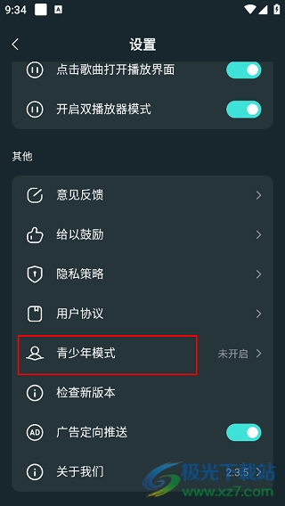 接着就会进入“设置”页面,得向上滑动屏幕,找到选项列表里的“青少年模式”并点击它。