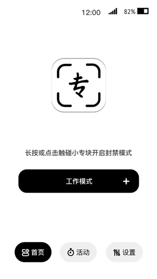 2、在首页能看到工作模式,长按或点击触碰小专块即可开启封禁模式;